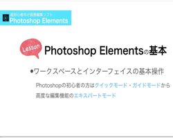 クイックモード・ガイドモード・エキスパートモードのワークスペースの基本操作方法 エレメンツ独自のツール、ツールオプション、パネル、タスクバーの機能と基本操作の説明です。 |